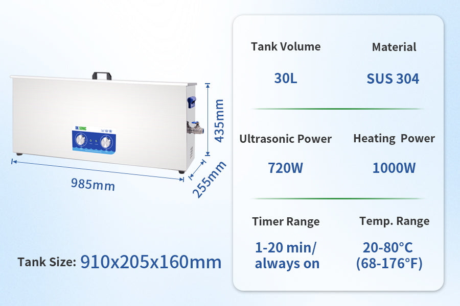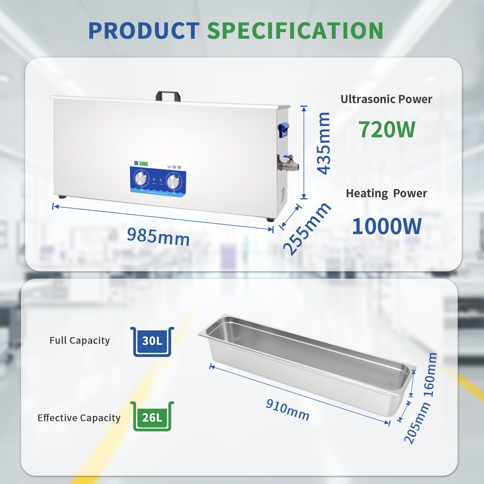 DK SONIC Professional Ultrasonic Cleaner 30L Stainless Steel, 720W Heavy-Duty Ultrasonic Gun Cleaner with Heater and Timer,Application for Rifle,Guns Parts,Bullets,Carburetor, Chains (Include Basket)