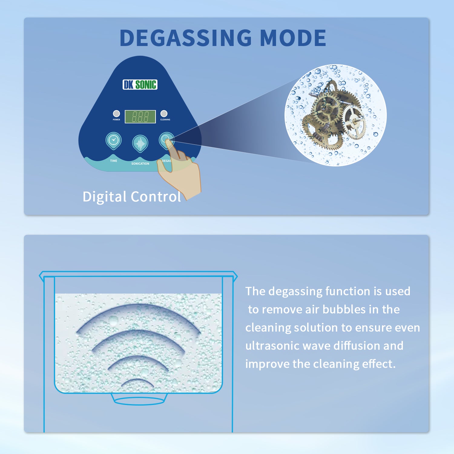 This feature removes dissolved air bubbles from the liquid, ensuring ultrasonic waves penetrate deeply for thorough cleaning. Ideal for delicate items like jewelry or precision parts.